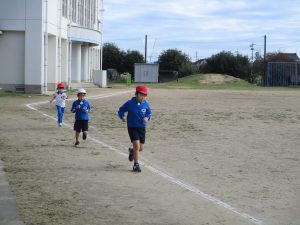 1・2年生の体育です。記録更新を目指して、頑張って走っています。全力で走っている姿はとてもすてきですね。
