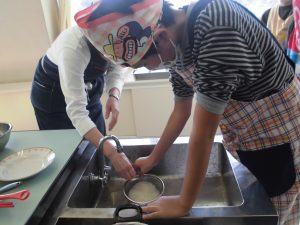 かむかむキッチンの講師の先生を招き、氷見の食材を使ってご飯とみそ汁を作りました。