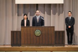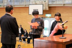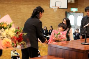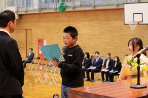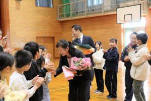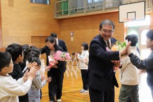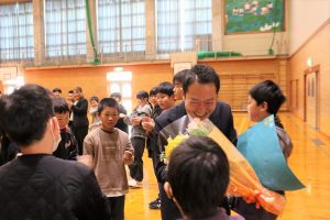 代表の子供たちが、心を込めて書いた手紙を読み上げ、花束を渡しました。