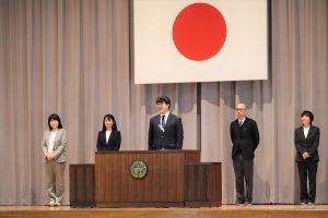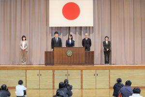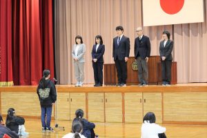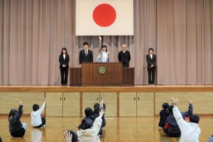 代表の子供が、5名の先生に歓迎の言葉を伝えました。