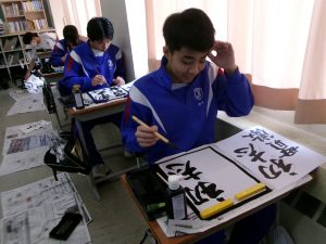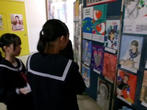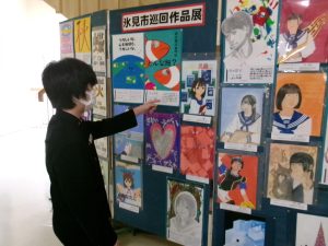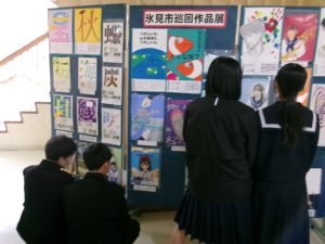 今週、氷見市内の生徒の美術作品が、十三中学校に展示されています。
