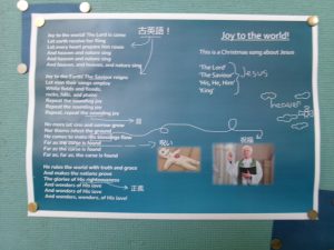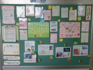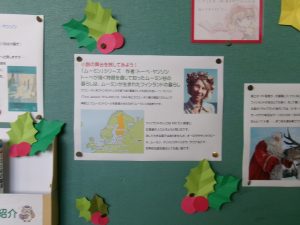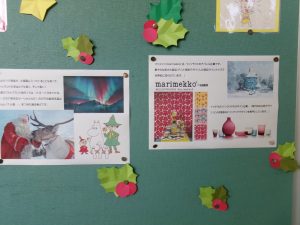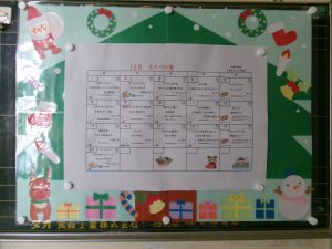 給食室前と図書室前の掲示物です。12月らしく変わっています。