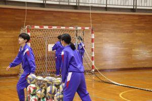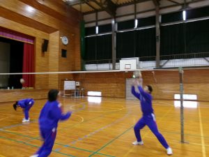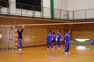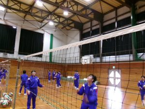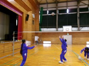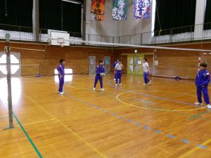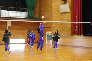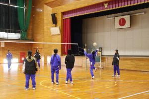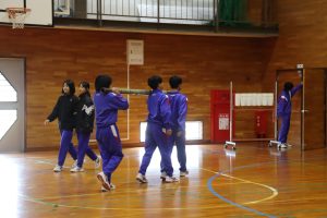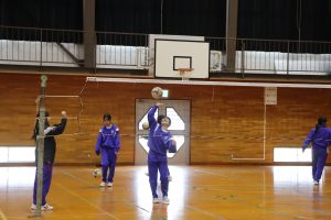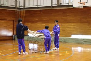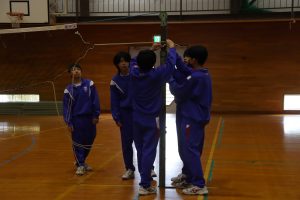 バレーボールの学習です。用具の準備片付けも手分けして行います。