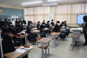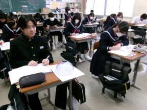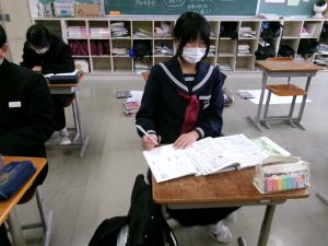 1年生の技術は、組み立てを行っています。2年生の技術は、最後のプログラミングでした。三日市先生からは「楽しみを発見したと思う。またプログラミングに挑戦してください。」と言葉をもらいました。3年生の理科は、太陽の1日の動きから考察しました。