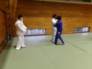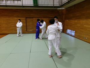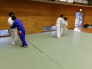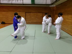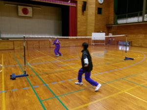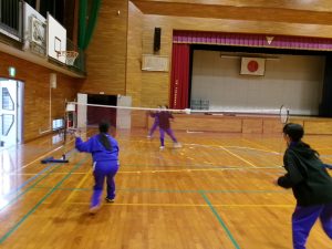 部活動が、体育館(柔道部、バドミントン部)とグラウンド(野球部)で活動しています。