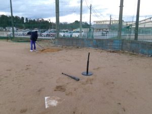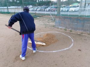 暖かな日差しの下、ソフトボール(Tボール)の学習を行いました。