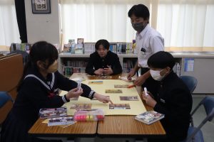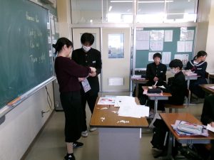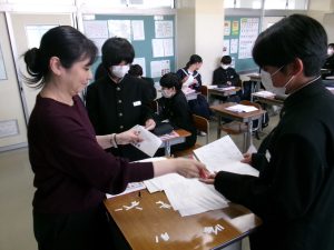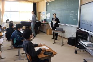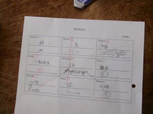 1年生の英語では、インタビュービンゴをしました。2学期に習った文型を楽しく復習しました。