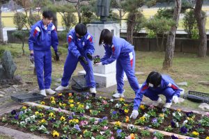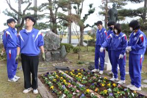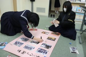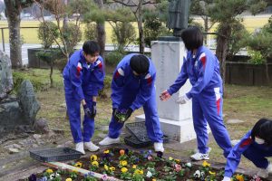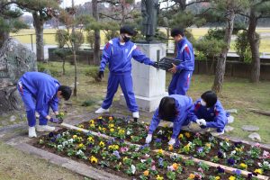 美化委員会は花苗を植えました。保健・給食委員会は教室の加湿器を設置しました。広報・放送委員会は掲示物を作りました。