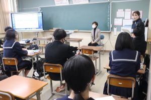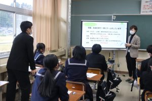 中学校の授業を見学したり、体験したりしました。親学び講座も開設されました。全体会では、生徒会執行部から中学校生活を生徒目線で説明してもらいました。