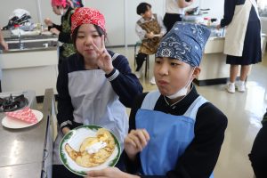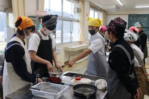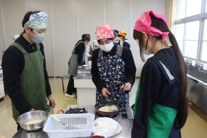 本日は、ひみの日献立です。冬野菜の団子汁が人気でした。