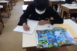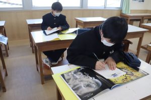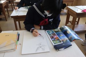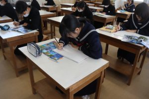 3年生の美術はスケッチの学習です。