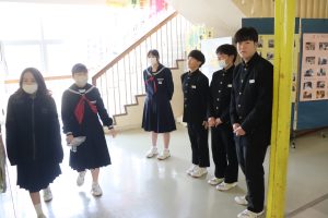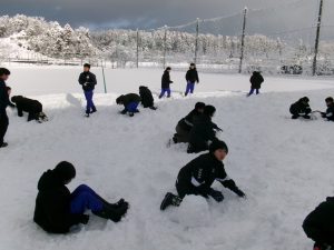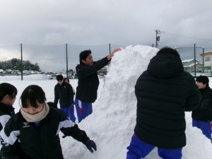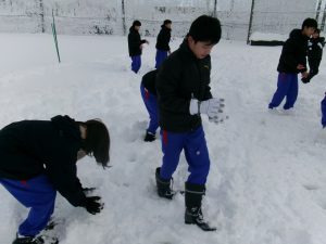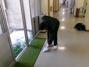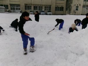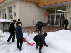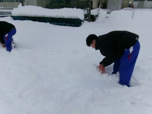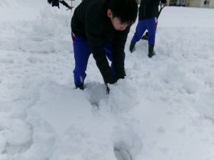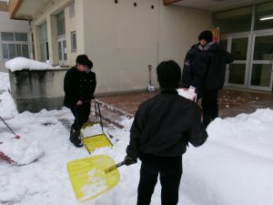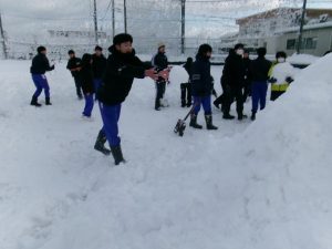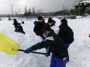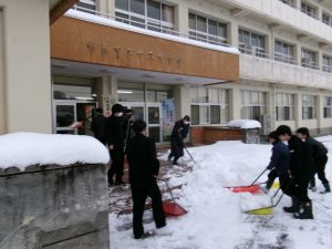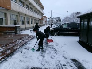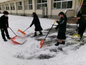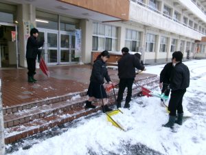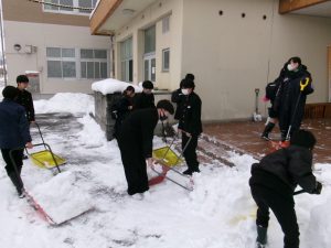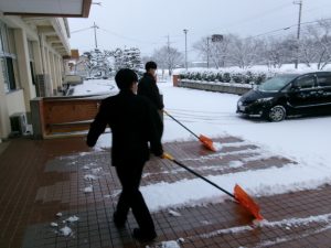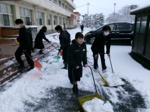今朝は生徒会執行部も加わり、きれいに除雪されました。仕事は片付けまで。