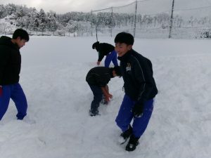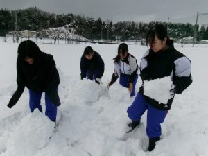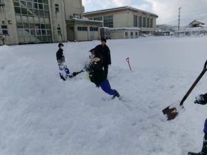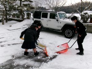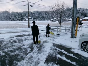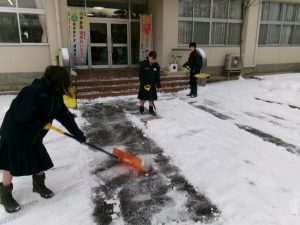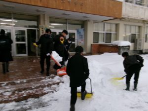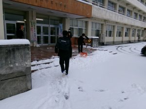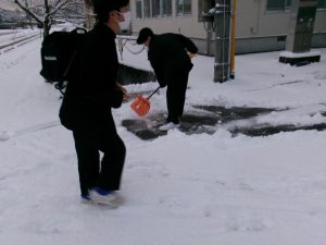 登校した生徒が除雪をしてくれました。