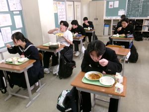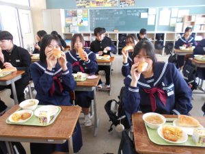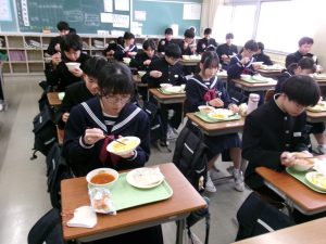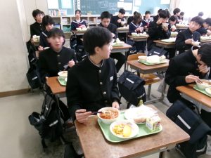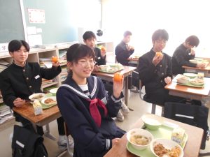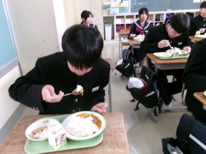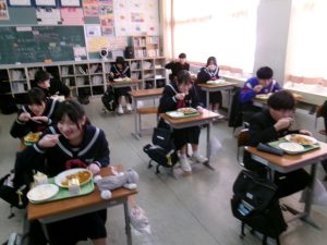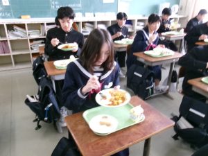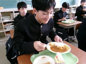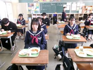 今日の給食は「ちょっとさみしー」と言いながらも、楽しくいただきました。