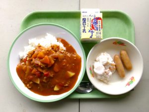 麦ごはん、牛乳、ウインナー、ポークカレー、ヨーグルトサラダ