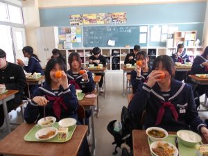 みかんが大人気でした。ビビンバの具をごはんにのせると美味しかったです。「給食つうしん」はこちらから