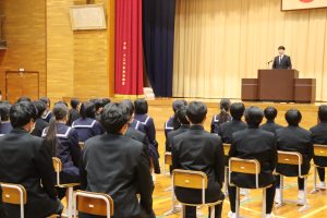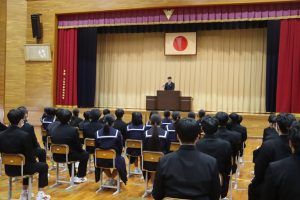 校長先生からは「目標に向かって、心落ち着かせて過ごしてほしい。自分の思いを貫いてほしい」とお話がありました。