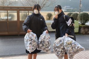 アルミ缶回収では48人が参加し、合計1585個集まりました。ありがとうございました。