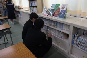 文化・図書委員会は、図書室の棚整理