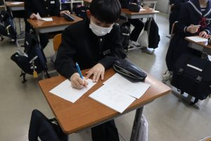 心を落ち着かせて、1年は「伝統芸能」2年は「文学の地」3年は「初志貫徹」です。