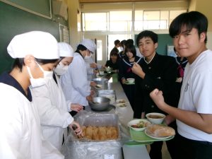 「豚汁が具だくさんでうれしいです。特に大根が美味しかったです。」(3年女子の感想)