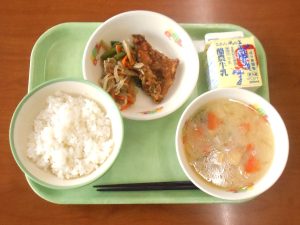 ごはん、牛乳、赤魚の南蛮漬け、みそけんちん汁、きんぴらごぼう