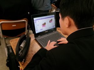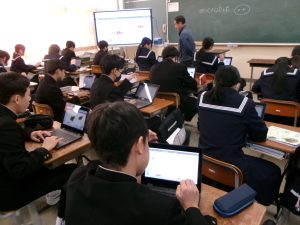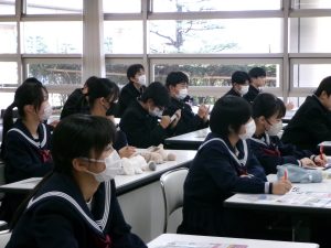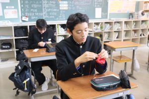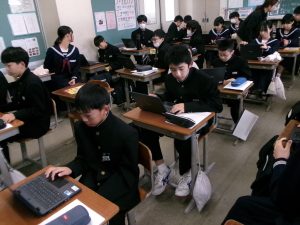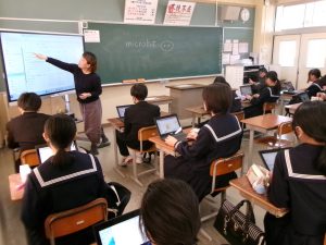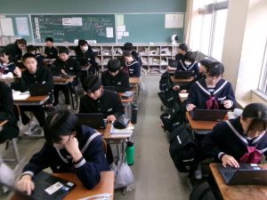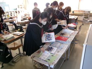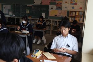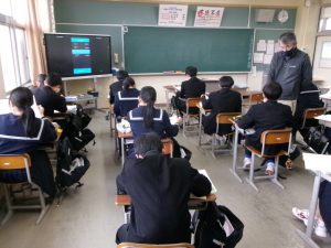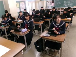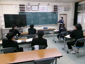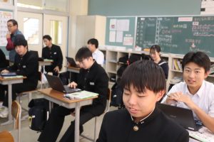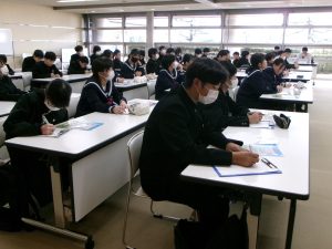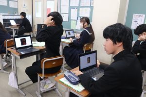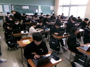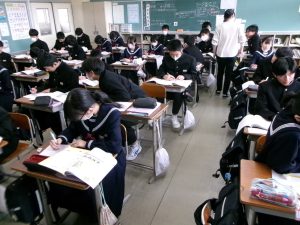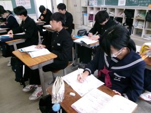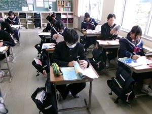 1年生の英語は長文の読解。2年生の美術は鑑賞。3年生の社会は現代社会の特色と日本国憲法について取り組みました。