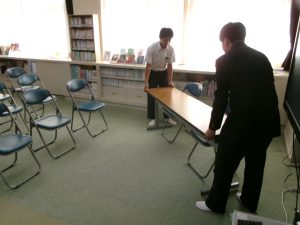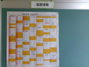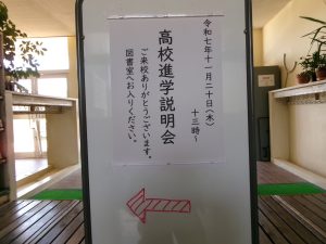 進路決定に向けて、3年生が保護者とともに受検の手続きや心構えを聞きました。資料の準備や会場設営も行いました。