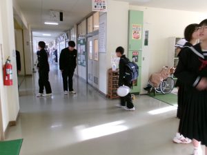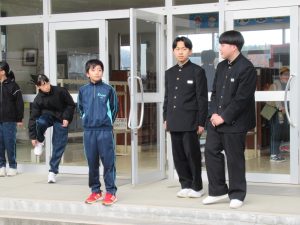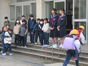 元気なあいさつが交わされていました。「今日も頑張りましょう」