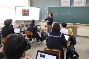 3年生は先週copilot(コパイロット)AIを使ってハロウィンパーティをしているイラストを作りました。全員が同じ指示でも違うイラストになることや、質問のコツを学びました。