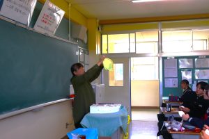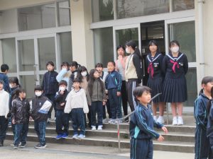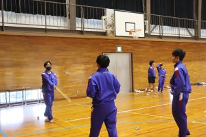 1年生の理科は鏡に反射した光の進み方。2・3年生の保健体育はソフトボール(Tボール)に取り組みました。
