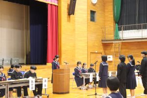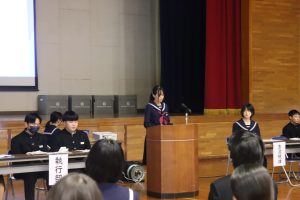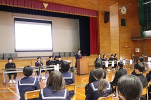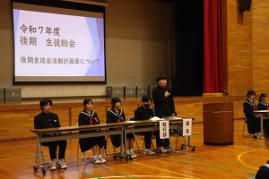 後期生徒会の活動計画案について、全校生徒で審議しました。