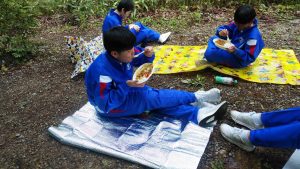 2日目の朝は掃除からスタートし、ラジオ体操をしました。
