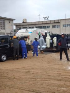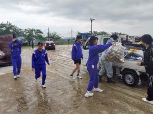 また、地域での回収後、湖南小学校に集まって、雨に濡れながら積み込み作業を行ってくれた生徒もいました。誠実に取り組む生徒の姿を見ることができて、大変うれしく思います。