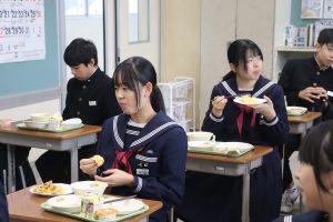 10/31 授業の様子(2年:家庭科) 2025年10月31日 2025年トピックス, 2025年度2学期, おしらせ, 学校トピックス 調理実習(クレープ作り)を行いました。給食と一緒にいただきました。 Post Views: 33