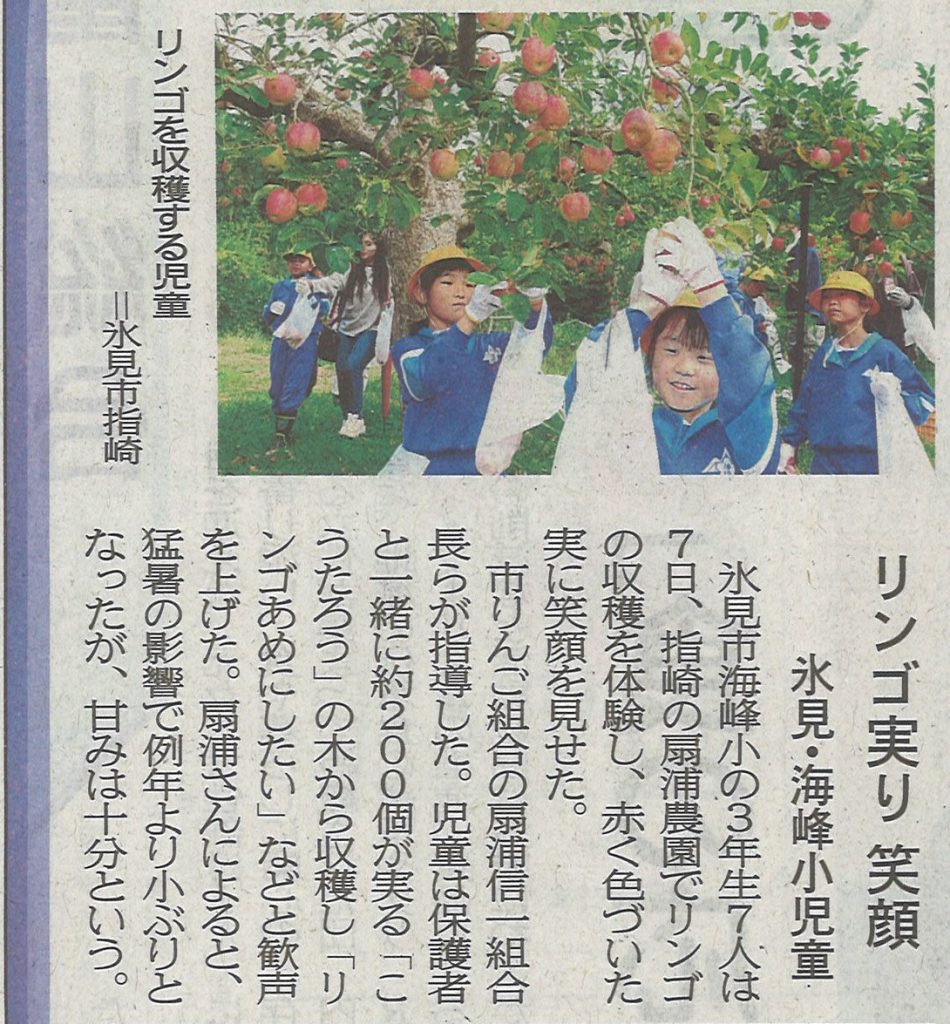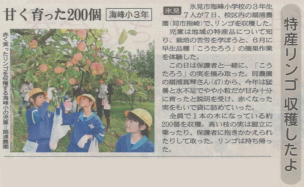2025年10月8日リンゴ収穫(R7.10.8 北日本新聞)3年生