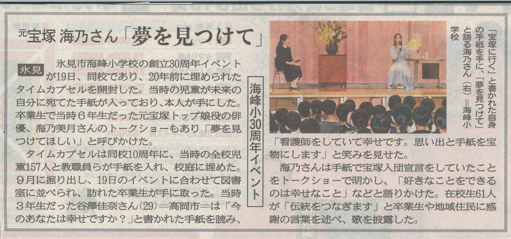 2025年10月22日創校30周年記念式典(R7.10.21 北日本新聞)