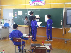 学校探検で見付けたことをみんなに発表していました。