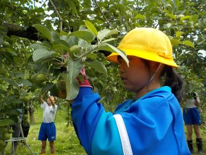 10日(月)に3年生がリンゴの摘果作業をさせていただきました。