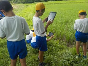 5年生が5/27に植えた苗を観察するために北八代の水田に出かけました。