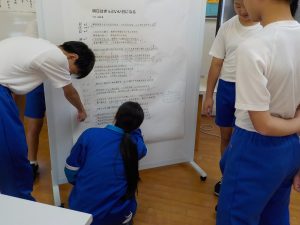 気を付けるポイントをみんなで考えて歌詞の紙に書き込んでいました。