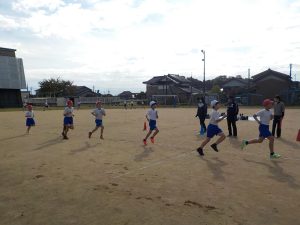 始めに、下学年が走りました。下学年は1.5km走りました。