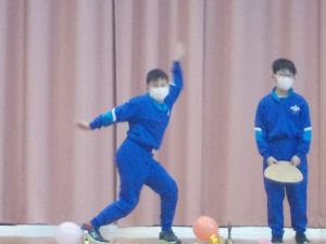 会の中で、5年生は「6年生クイズ」をしました。楽しい劇でクイズのヒントを出して会を盛り上げました。楽しい漫才形式で出題したり、懐かしいPPAP♪が登場したりと、5年生のアイデアがつまったクイズでした。