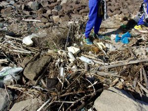 海岸に着いた子供たちは、ごみの多さにびっくりしました。