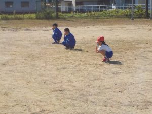 子供たちは、その場でしゃがんでしっかり放送を聞いていました。