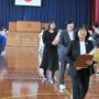 今日でお別れになる先生方に感謝の気持ちを伝える離任式を行いました。