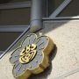 本校の玄関上部にある校章のレリーフに、今年もスズメが巣作りを始めました。