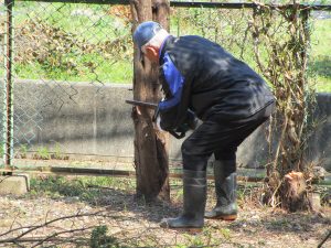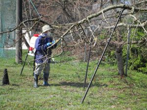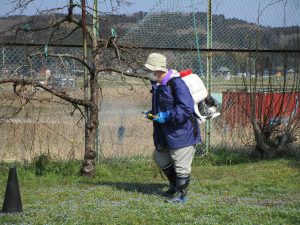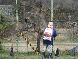 4月3日(金)りんご栽培指導者の鎌仲さんが、りんごの消毒にきてくださいました。