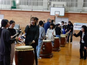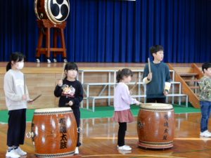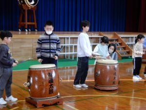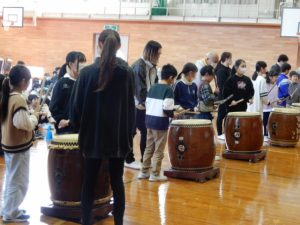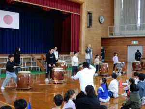 腹の底に響く音色に驚きつつも、軽やかに舞うように演奏する姿に目がくぎ付けになっていました。なんと!ALTの先生も有磯太鼓保存会のメンバーとして参加していました。
