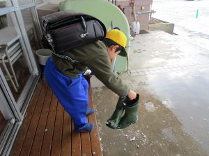 先生たちで、通学路や駐車場、ランチルームの入り口付近を除雪しました。